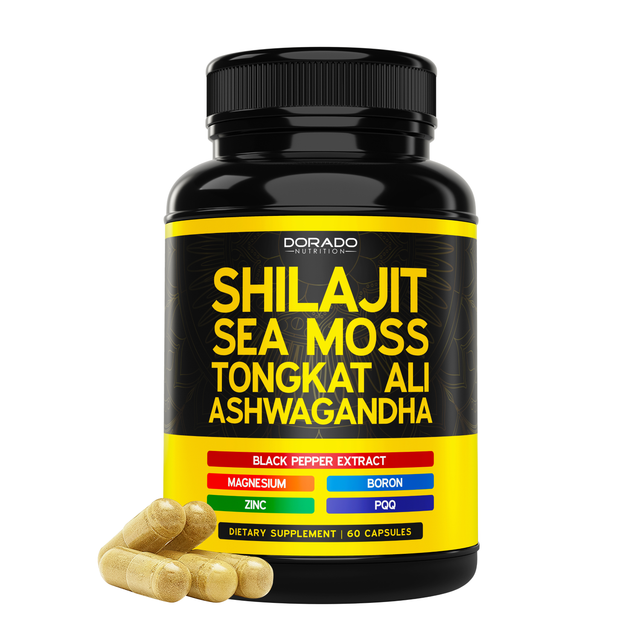 • SHILAJIT COMPLEX – Formulated with Shilajit extract standardized to fulvic acid, plus Sea Moss, Tongkat Ali, and Ashwagandha in one convenient blend.